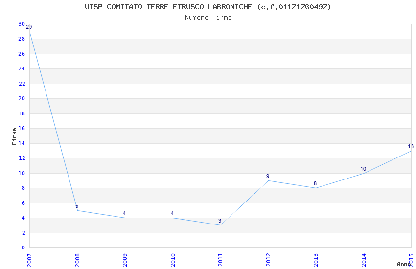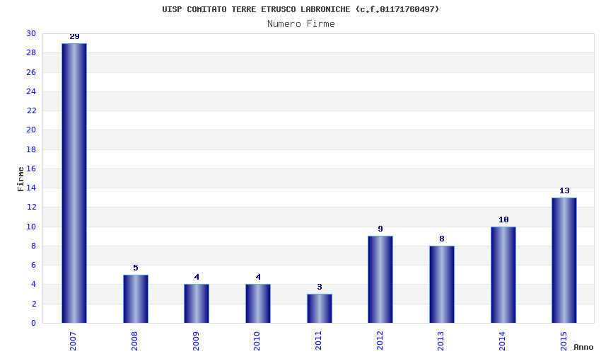 | Anno | Firme | Importi | Media | Naz. | Reg. | Prov. | Comu. |