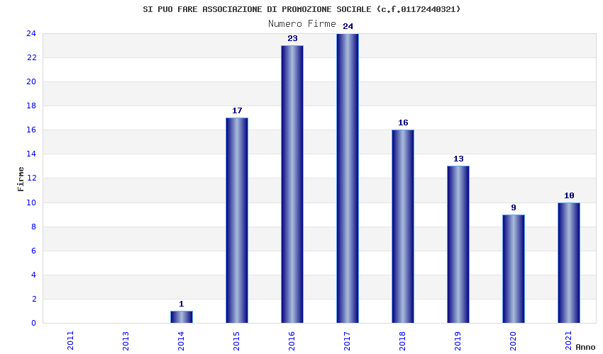 | Anno | Firme | Importi | Media | Naz. | Reg. | Prov. | Comu. |