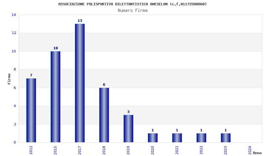 | Anno | Firme | Importi | Media | Naz. | Reg. | Prov. | Comu. |