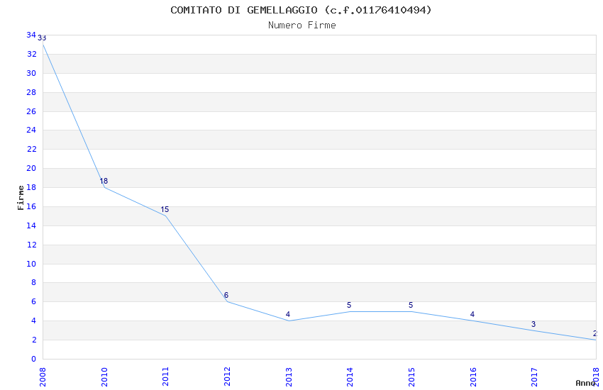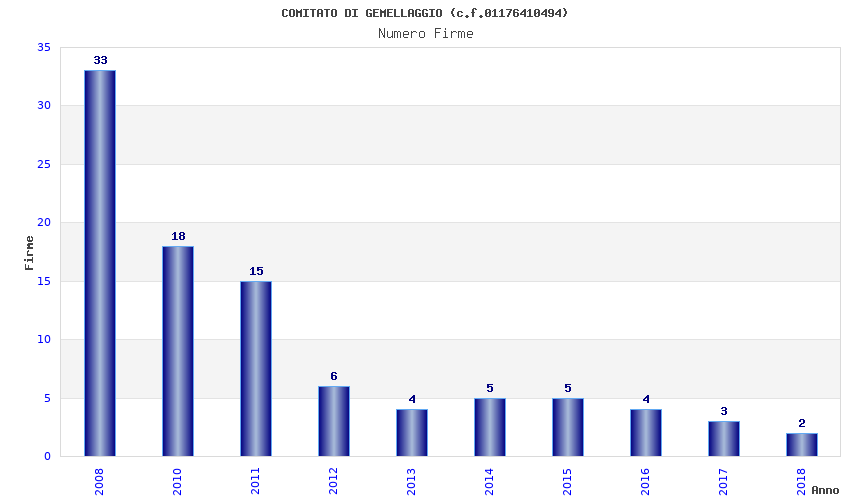 | Anno | Firme | Importi | Media | Naz. | Reg. | Prov. | Comu. |
