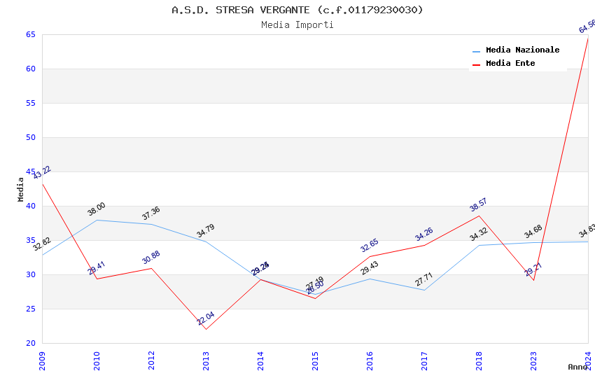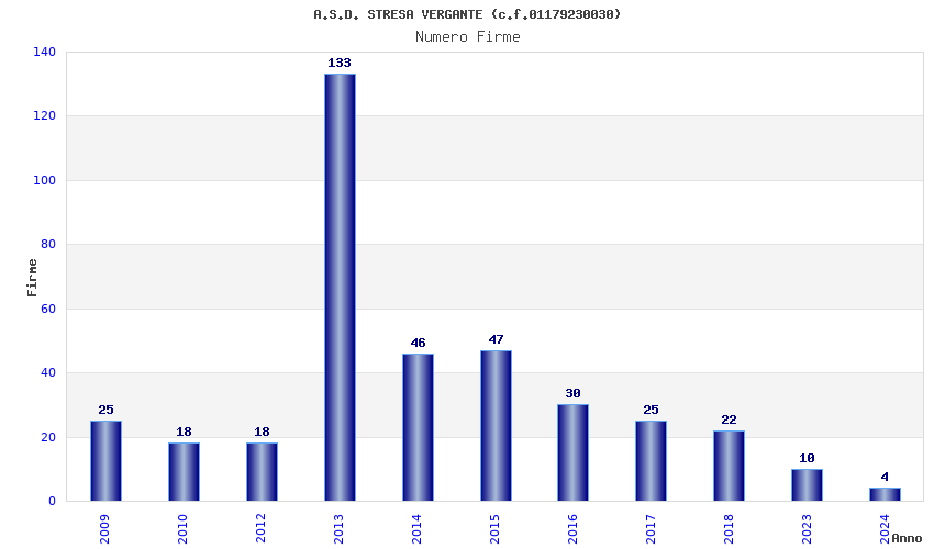 | Anno | Firme | Importi | Media | Naz. | Reg. | Prov. | Comu. |
