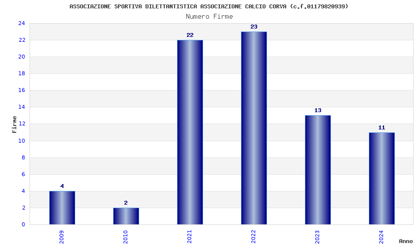 | Anno | Firme | Importi | Media | Naz. | Reg. | Prov. | Comu. |