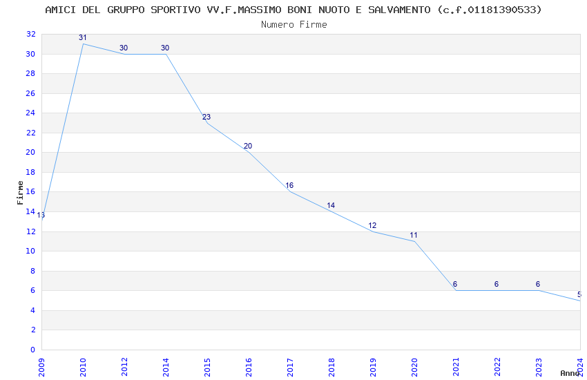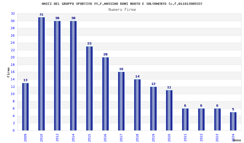 | Anno | Firme | Importi | Media | Naz. | Reg. | Prov. | Comu. |
