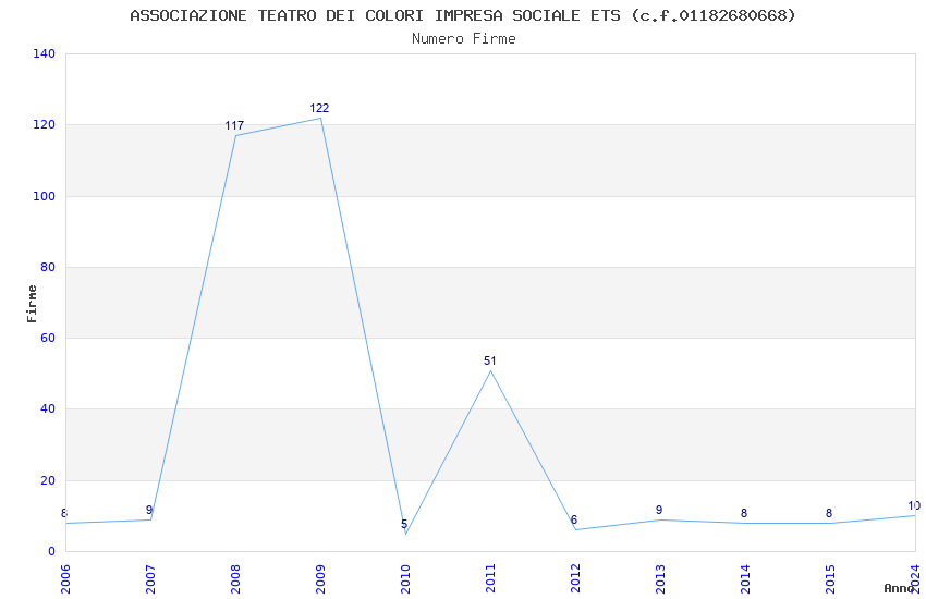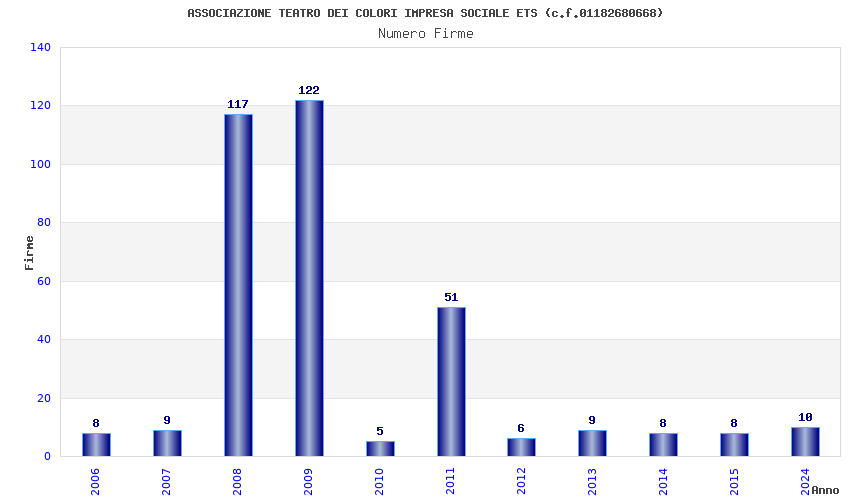 | Anno | Firme | Importi | Media | Naz. | Reg. | Prov. | Comu. |