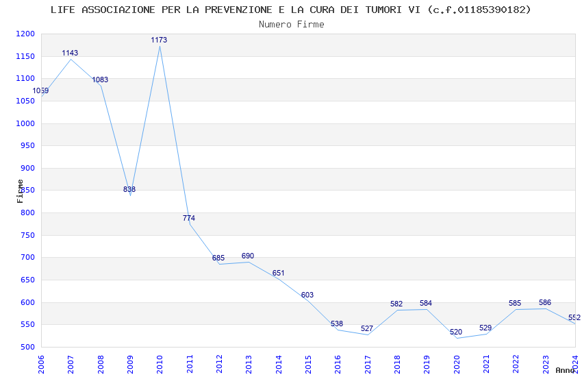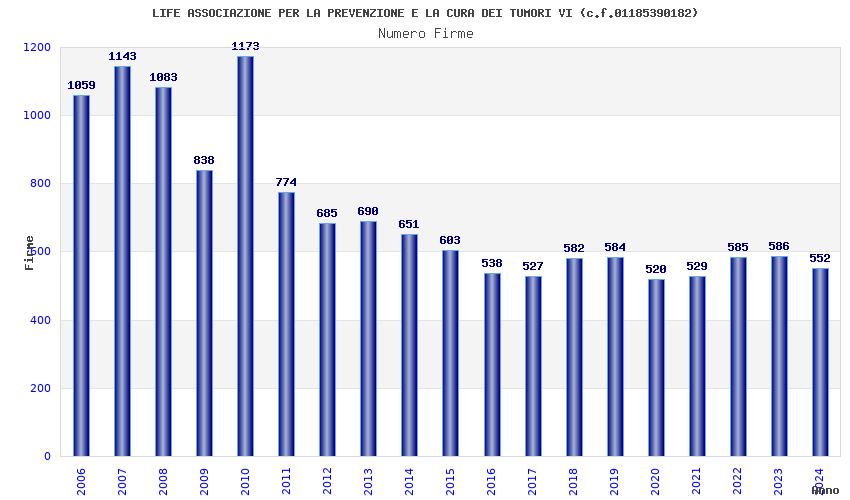 | Anno | Firme | Importi | Media | Naz. | Reg. | Prov. | Comu. |
