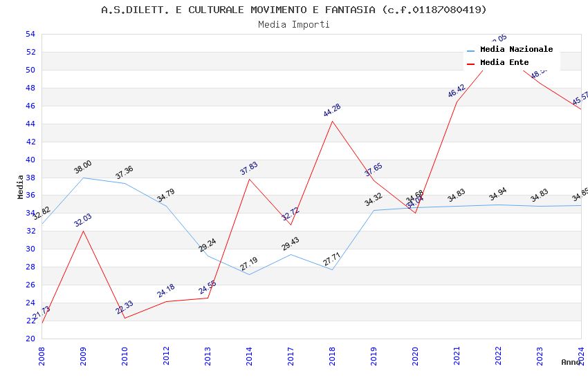 | Anno | Firme | Importi | Media | Naz. | Reg. | Prov. | Comu. |