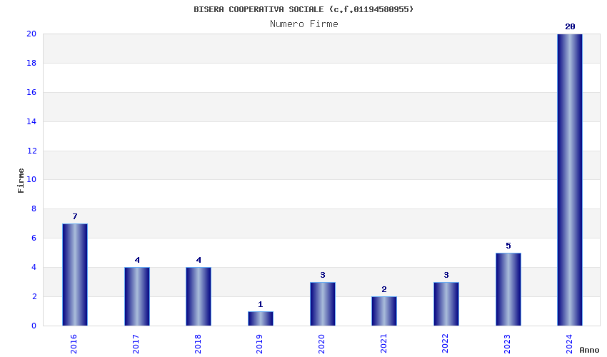 | Anno | Firme | Importi | Media | Naz. | Reg. | Prov. | Comu. |