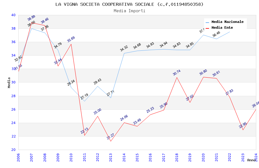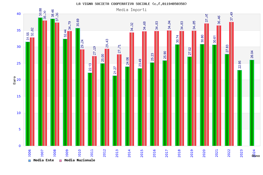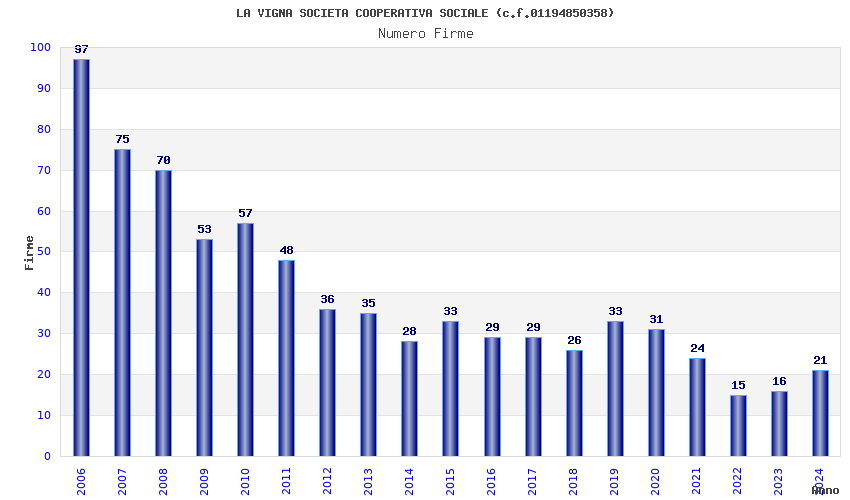 | Anno | Firme | Importi | Media | Naz. | Reg. | Prov. | Comu. |