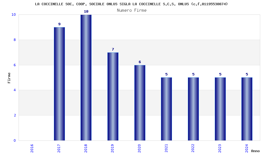 | Anno | Firme | Importi | Media | Naz. | Reg. | Prov. | Comu. |