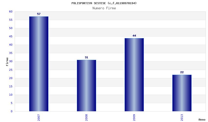 | Anno | Firme | Importi | Media | Naz. | Reg. | Prov. | Comu. |