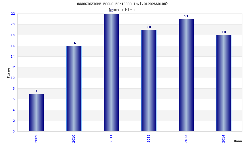 | Anno | Firme | Importi | Media | Naz. | Reg. | Prov. | Comu. |