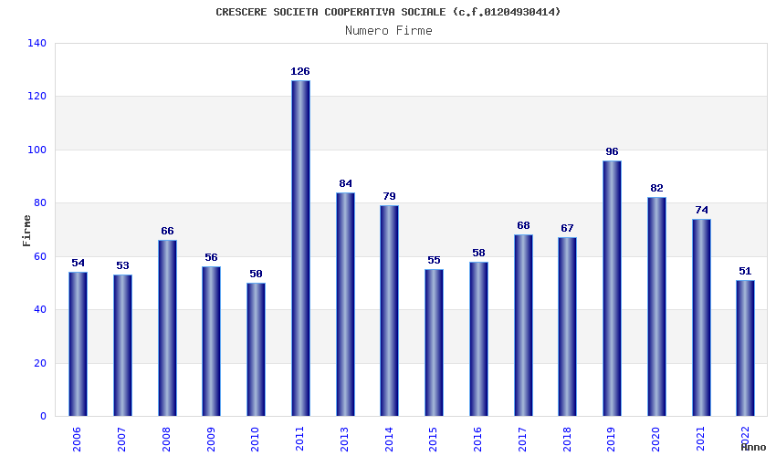 | 2011 | 126 | 2.494,03 | 19,79 | 13.003 | 323 | 66 | 22 |
