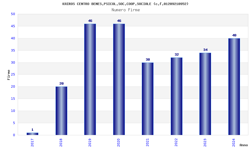 | Anno | Firme | Importi | Media | Naz. | Reg. | Prov. | Comu. |