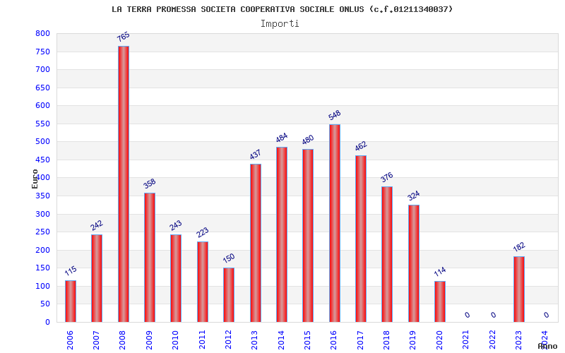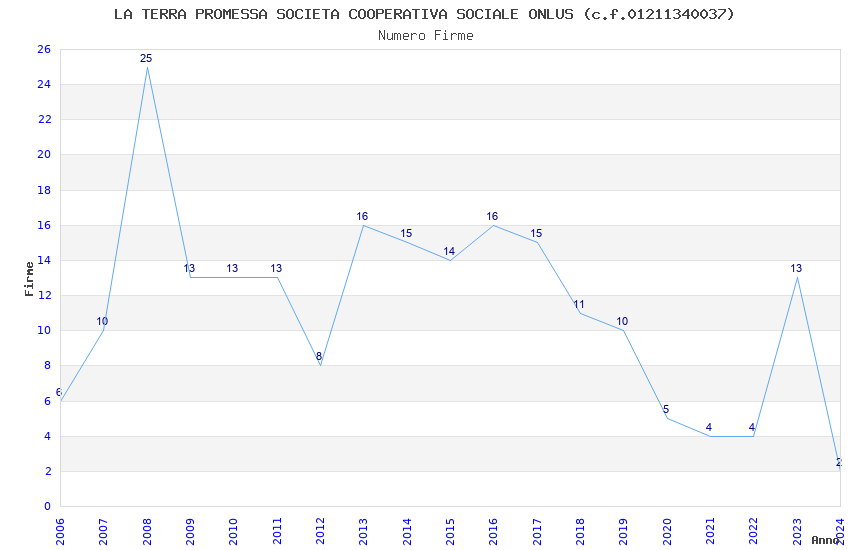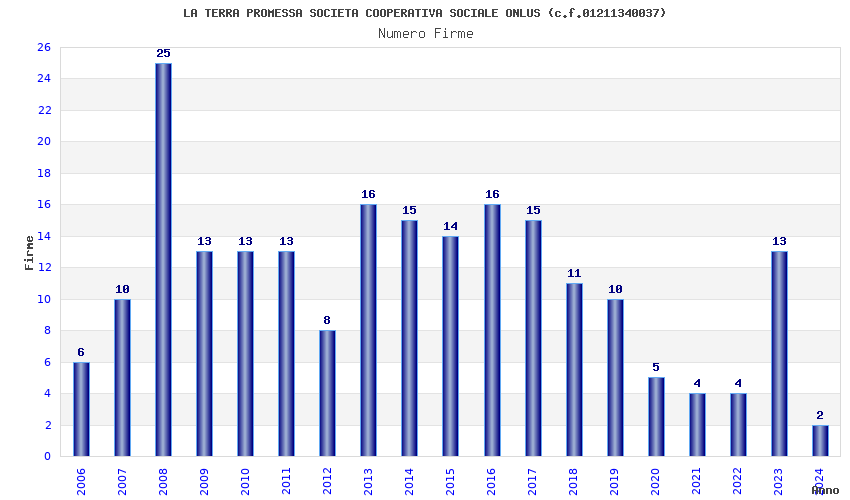 | Anno | Firme | Importi | Media | Naz. | Reg. | Prov. | Comu. |