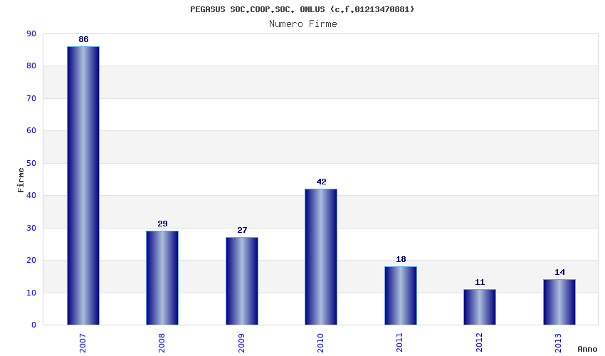 | Anno | Firme | Importi | Media | Naz. | Reg. | Prov. | Comu. |