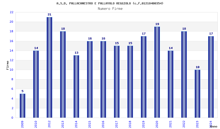 | Anno | Firme | Importi | Media | Naz. | Reg. | Prov. | Comu. |