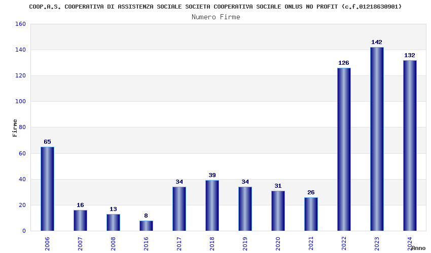 | Anno | Firme | Importi | Media | Naz. | Reg. | Prov. | Comu. |