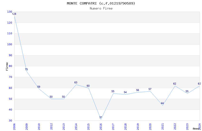 | 2023 | 55 | 1.432,34 | 26,04 | 29.590 | 2.902 | 2.389 | 2 |
