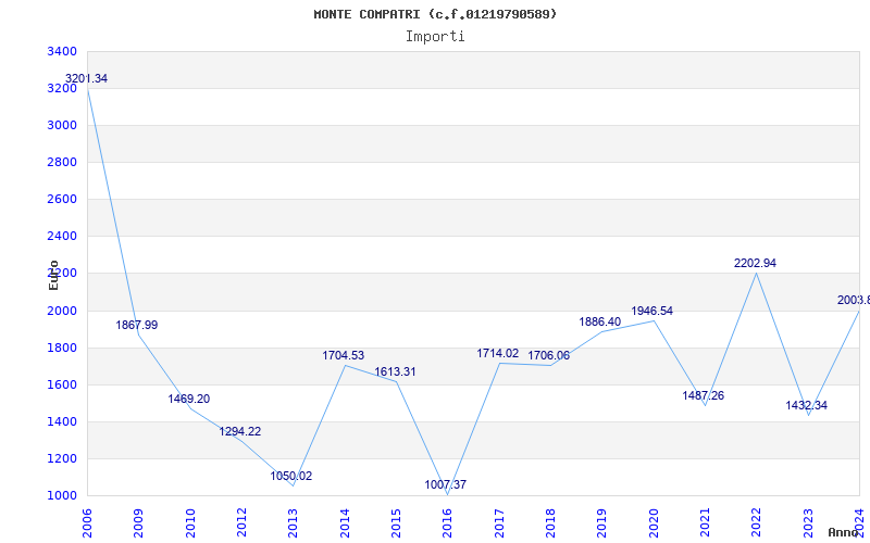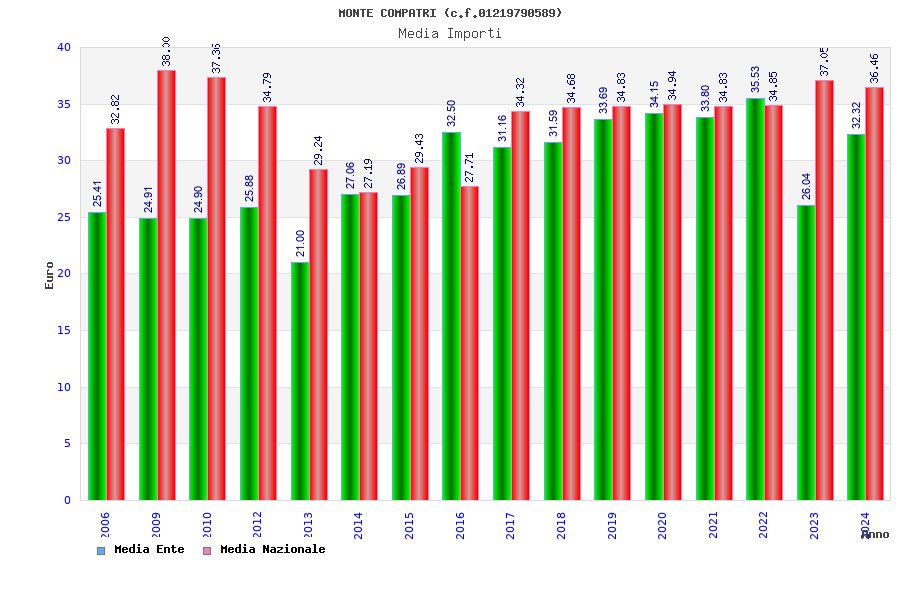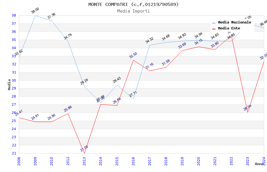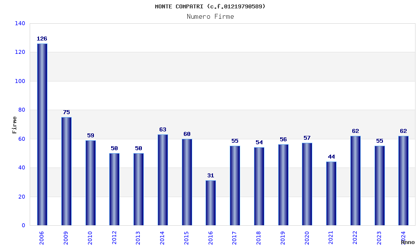 | Anno | Firme | Importi | Media | Naz. | Reg. | Prov. | Comu. |