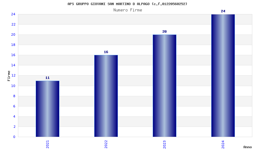 | Anno | Firme | Importi | Media | Naz. | Reg. | Prov. | Comu. |