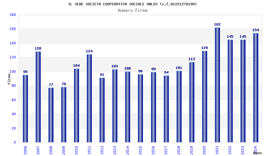 | Anno | Firme | Importi | Media | Naz. | Reg. | Prov. | Comu. |