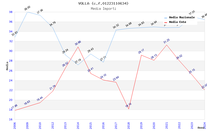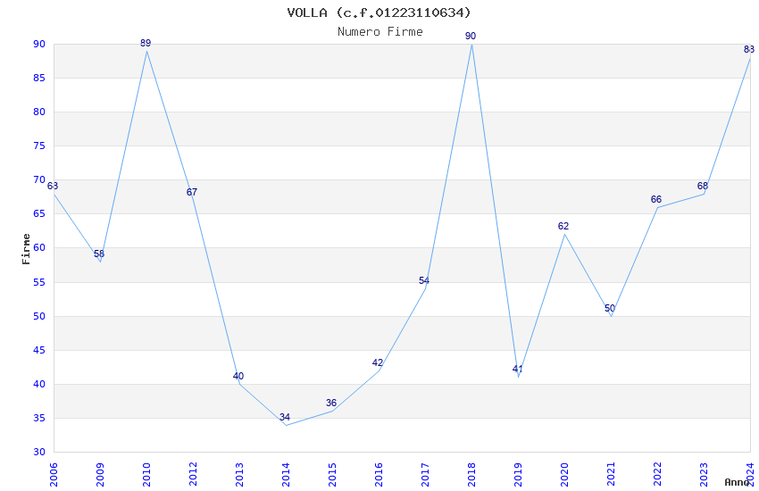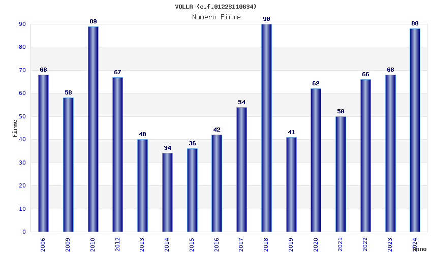 | Anno | Firme | Importi | Media | Naz. | Reg. | Prov. | Comu. |