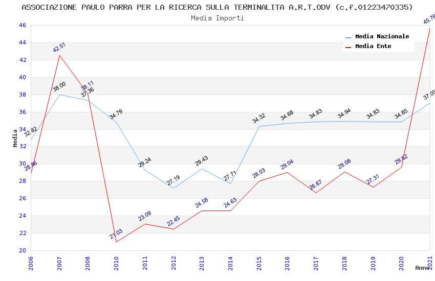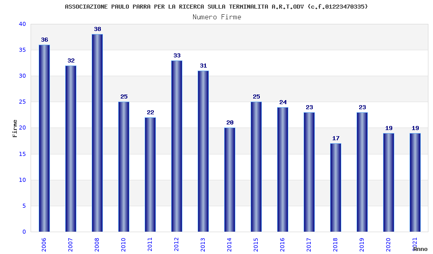 | Anno | Firme | Importi | Media | Naz. | Reg. | Prov. | Comu. |