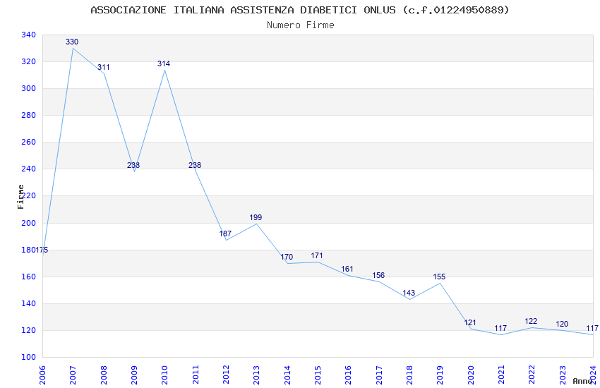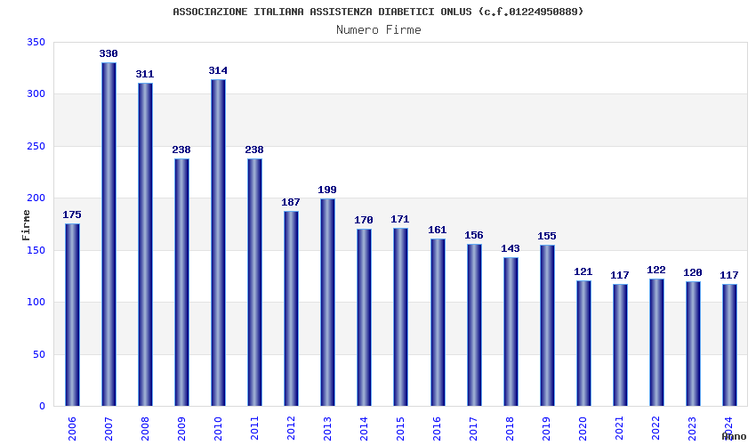 | Anno | Firme | Importi | Media | Naz. | Reg. | Prov. | Comu. |