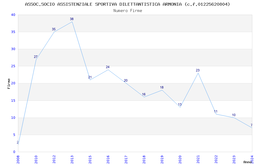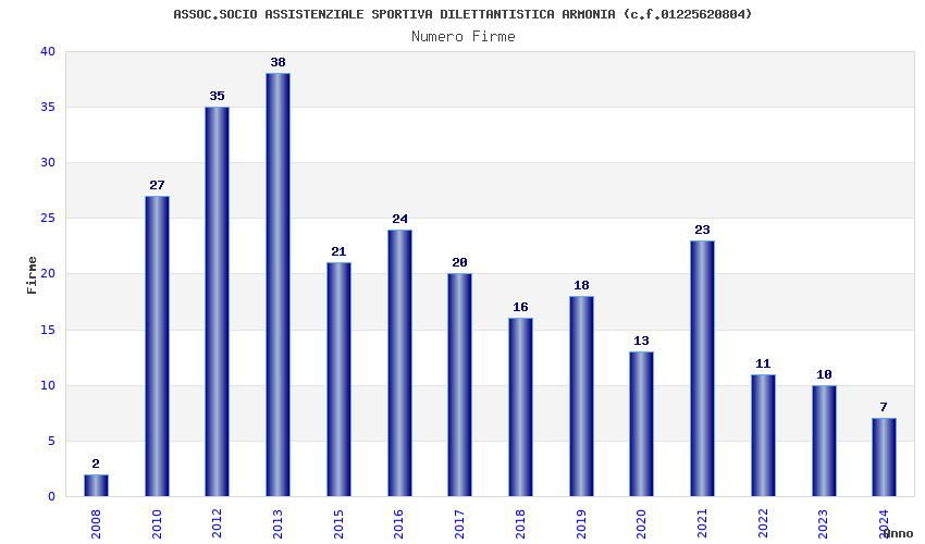 | Anno | Firme | Importi | Media | Naz. | Reg. | Prov. | Comu. |