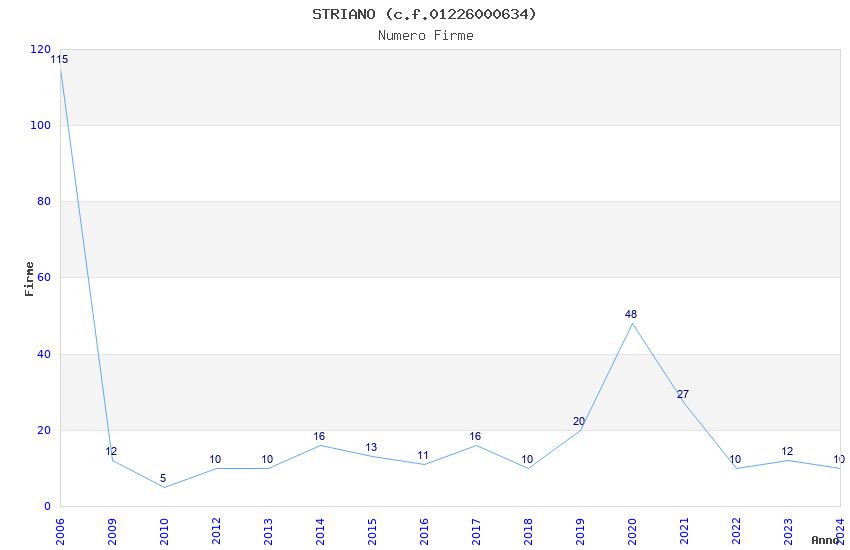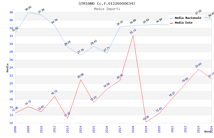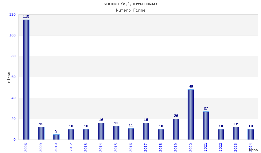 | Anno | Firme | Importi | Media | Naz. | Reg. | Prov. | Comu. |