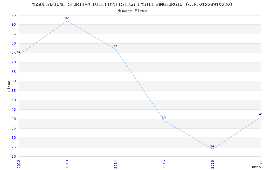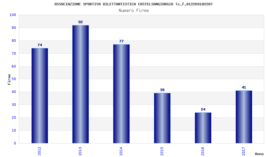 | Anno | Firme | Importi | Media | Naz. | Reg. | Prov. | Comu. |