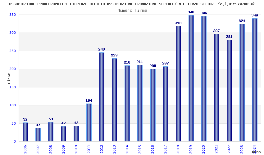 | Anno | Firme | Importi | Media | Naz. | Reg. | Prov. | Comu. |