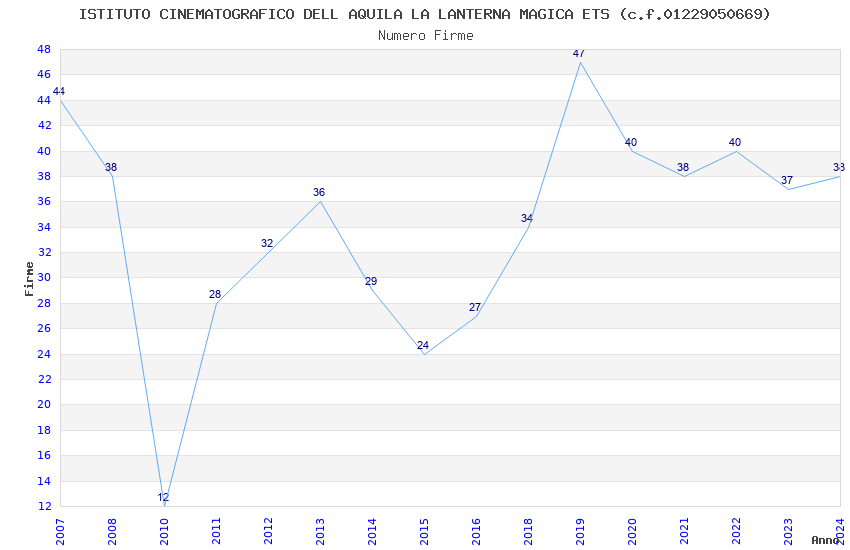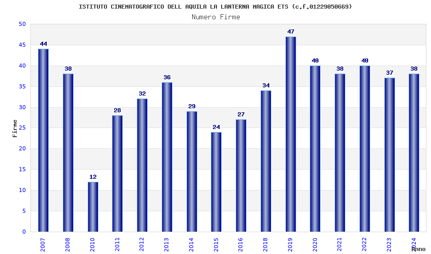 | Anno | Firme | Importi | Media | Naz. | Reg. | Prov. | Comu. |