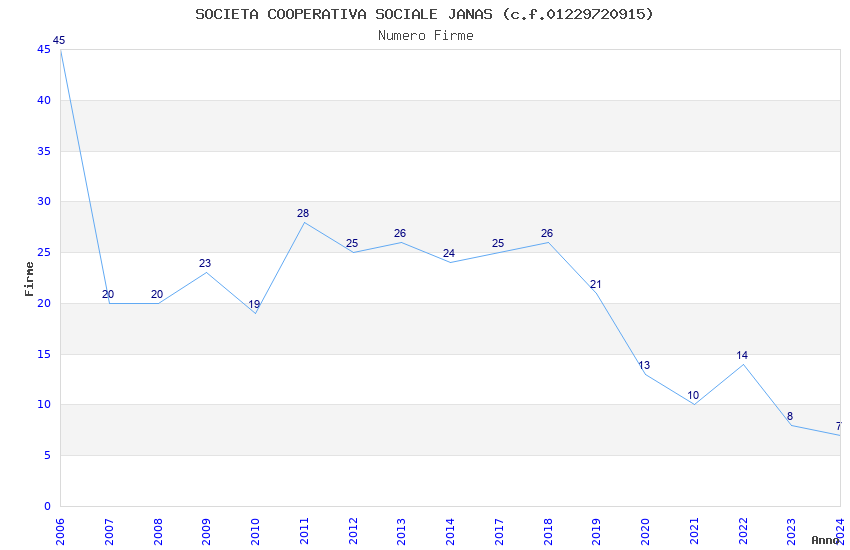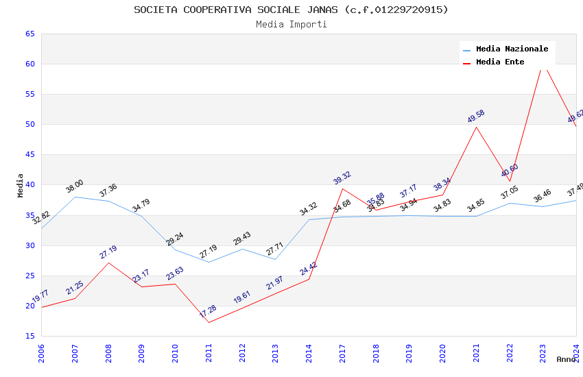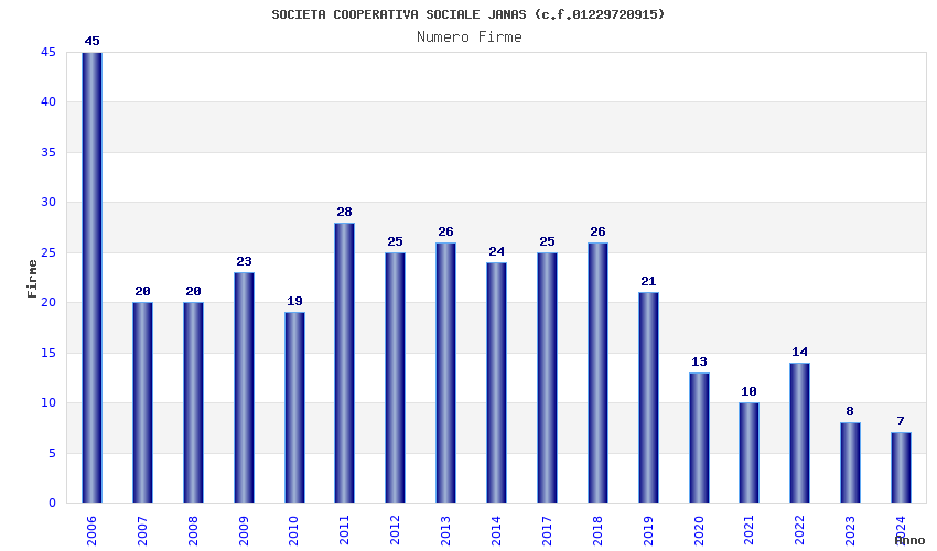 | Anno | Firme | Importi | Media | Naz. | Reg. | Prov. | Comu. |