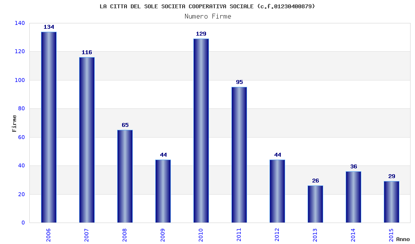 | Anno | Firme | Importi | Media | Naz. | Reg. | Prov. | Comu. |