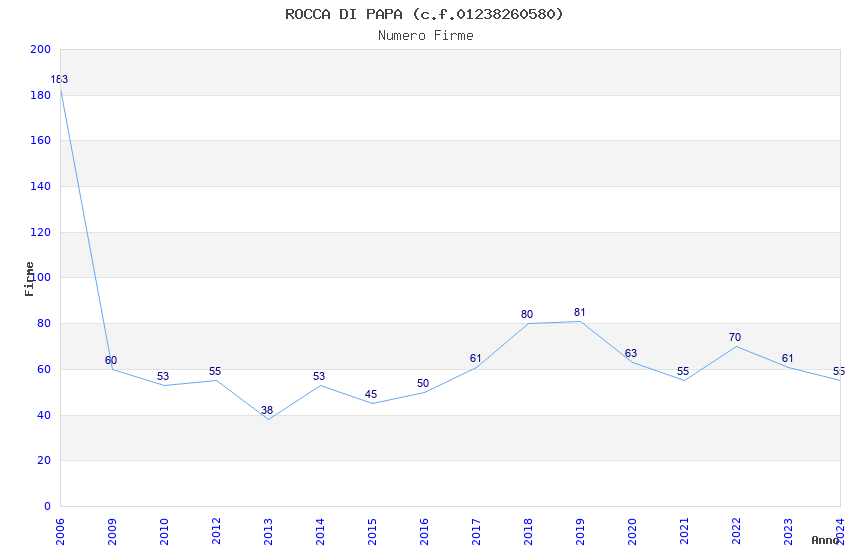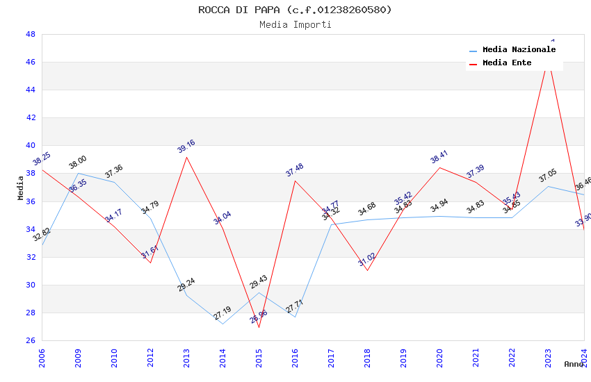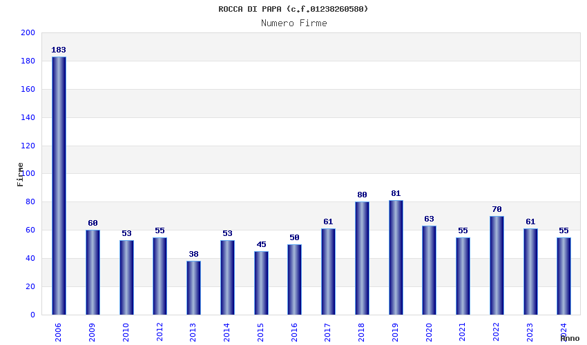 | Anno | Firme | Importi | Media | Naz. | Reg. | Prov. | Comu. |