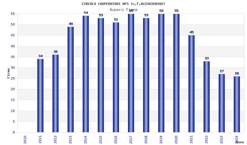 | Anno | Firme | Importi | Media | Naz. | Reg. | Prov. | Comu. |