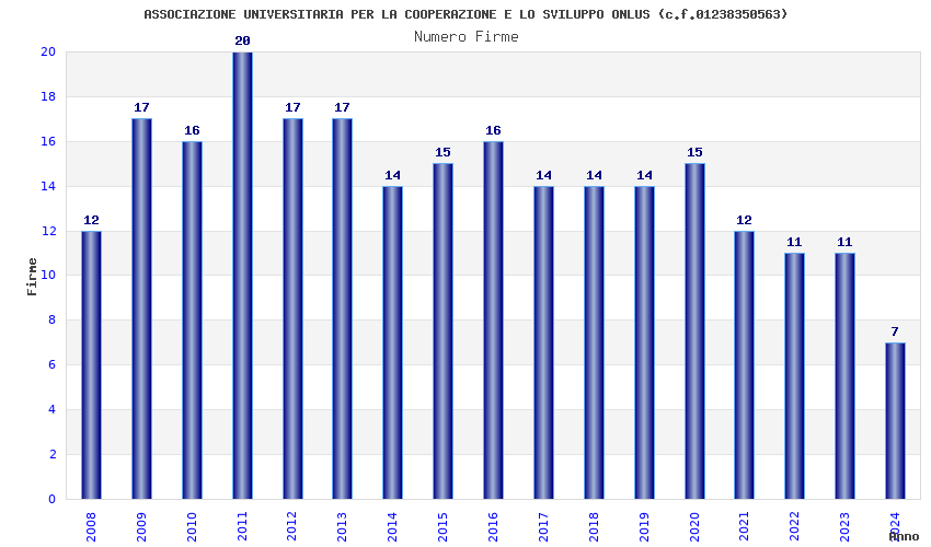 | Anno | Firme | Importi | Media | Naz. | Reg. | Prov. | Comu. |