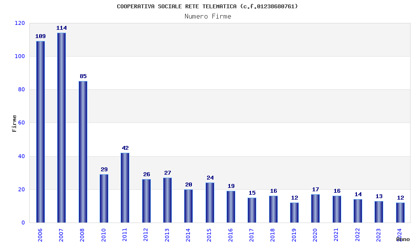 | 2006 | 109 | 2.431,42 | 22,31 | 13.556 | 85 | 59 | 18 |