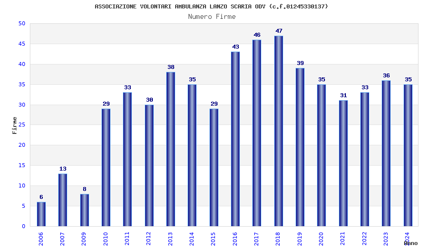 | Anno | Firme | Importi | Media | Naz. | Reg. | Prov. | Comu. |