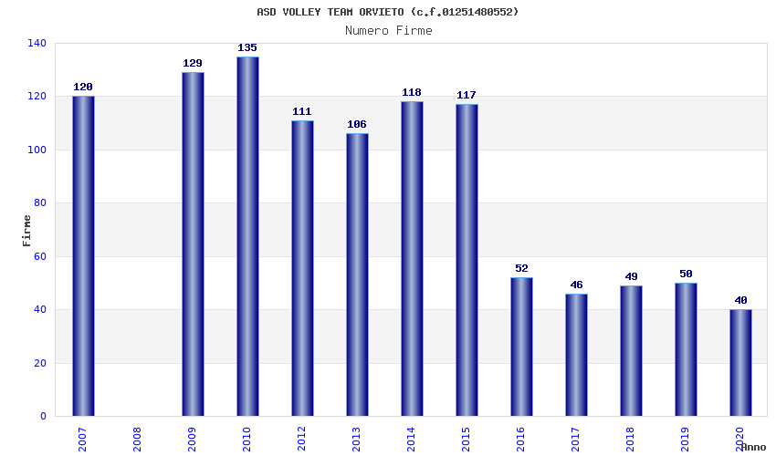 | Anno | Firme | Importi | Media | Naz. | Reg. | Prov. | Comu. |