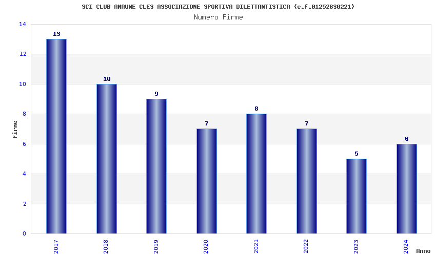 | Anno | Firme | Importi | Media | Naz. | Reg. | Prov. | Comu. |