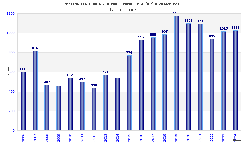 | Anno | Firme | Importi | Media | Naz. | Reg. | Prov. | Comu. |