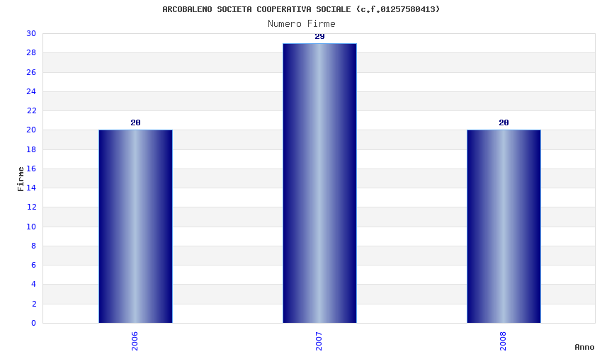 | Anno | Firme | Importi | Media | Naz. | Reg. | Prov. | Comu. |