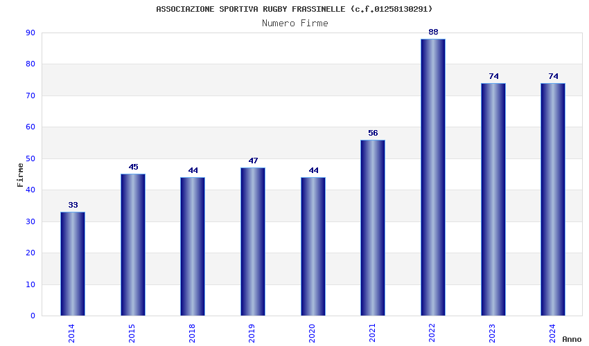 | Anno | Firme | Importi | Media | Naz. | Reg. | Prov. | Comu. |