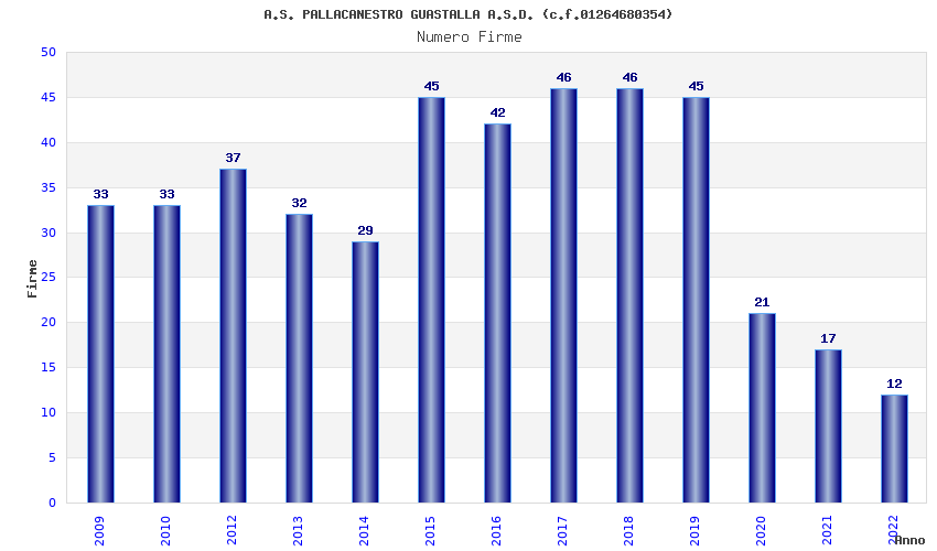 | Anno | Firme | Importi | Media | Naz. | Reg. | Prov. | Comu. |