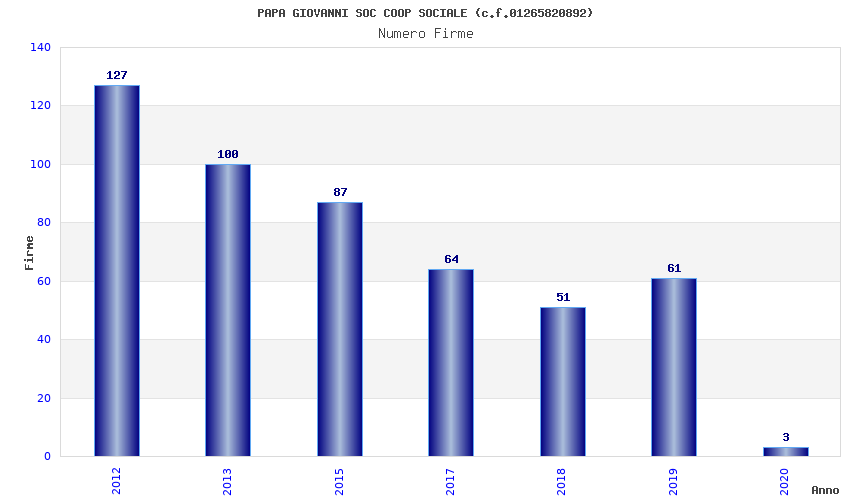 | Anno | Firme | Importi | Media | Naz. | Reg. | Prov. | Comu. |
