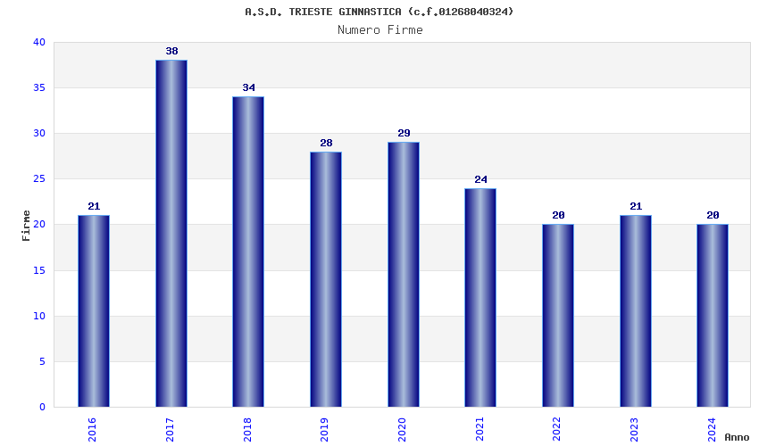 | Anno | Firme | Importi | Media | Naz. | Reg. | Prov. | Comu. |