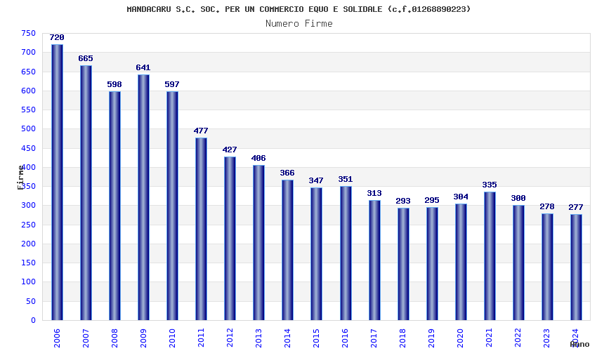 | Anno | Firme | Importi | Media | Naz. | Reg. | Prov. | Comu. |