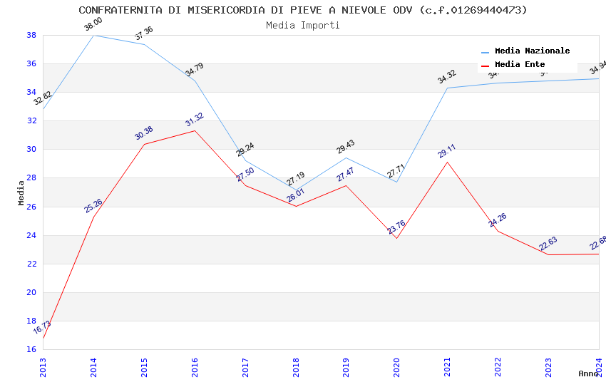 | Anno | Firme | Importi | Media | Naz. | Reg. | Prov. | Comu. |